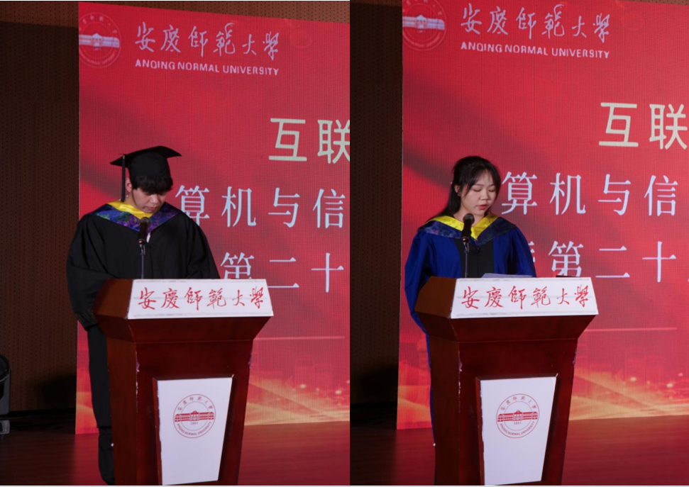 毕业典礼上,吴海峰宣读了优秀毕业生名单,教师代表刘慧送上真诚的毕业祝福,研究生代表陶丽青和本科生代表李登峰分别发言,回顾了校园生活,表达了对公司和老师的不舍与感激!与会领导老师为毕业生代表拨穗,颁发证书。