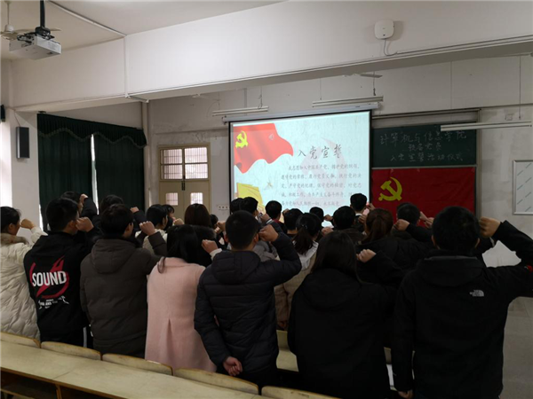 1月4日下午,威廉希尔足球官网举行新党员入党宣誓仪式。计算机与信息公司党委副书记江伟参加仪式。