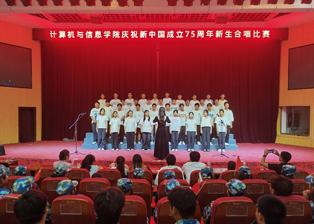 率先出场的是2024级计算机9班的同学带来比赛曲目《没有共产党就没有新中国》,9班同学的歌声激昂有力,他们以整齐的队形、昂扬的斗志和深情的演唱,赢得了现场观众的阵阵掌声。2024级计算机3班的同学们激情唱响《强军战歌》,唱出不仅是对伟大军人的崇高礼赞,更是我们强国梦想坚定信念的体现,彰显了强军精神的伟大力量。