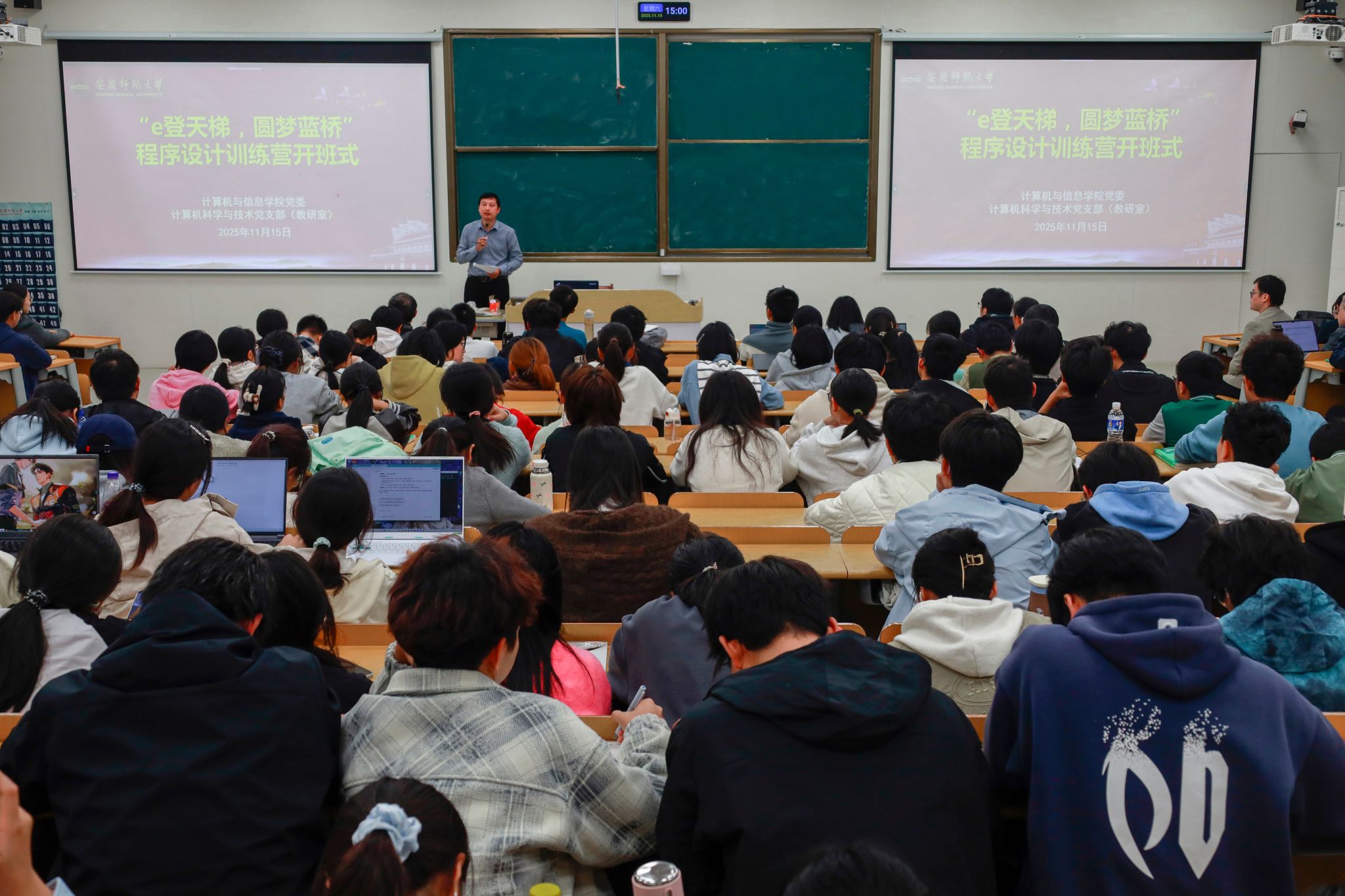 11月15日,公司在C108教室举行“e登天梯,圆梦蓝桥”程序设计训练营开班仪式。公司党委副书记肖之进,党委委员、计算机科学与技术党支部书记、教研室主任江克勤,教师代表及参训学员等150余人参加活动。