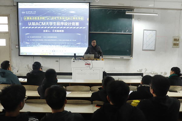 “什么是ACM?”“怎样学好计算机编程?”近日,公司在稼先楼201教室举办了“e”文化节之师长导航报告会,公司江克勤教授做了关于程序设计大赛的专题报告,公司相关老师及各班级员工代表参加了报告会。