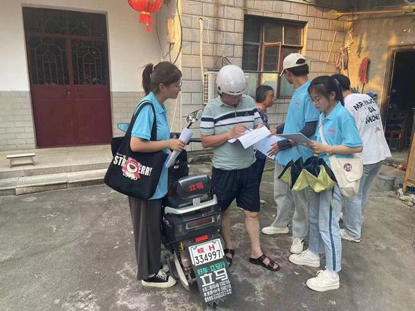 与此同时,成员们携带自制的纸质版和电子版防溺水调查问卷深入社区居民楼、街道广场、社区工作站进行问卷调查填写工作,全面了解居民们的防溺水安全意识、防护救护能力、采取的措施以及意见建议等。同时,给居民们发放防溺水安全宣传单,并在发放的过程中向他们讲解预防溺水的危害和相关措施。在调研过程中,发现村民们对附近水域的情况都比较熟悉,经常到附近水域洗衣,很多青少年也喜欢去游泳、游玩。成员们从一位幼儿园年轻老师口中了解到,部分村民对自身水性过于自信,警惕性还有待提高,自我救援知识亟待科普。
