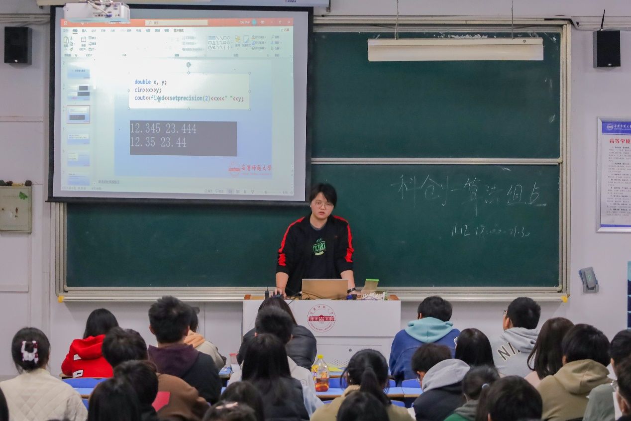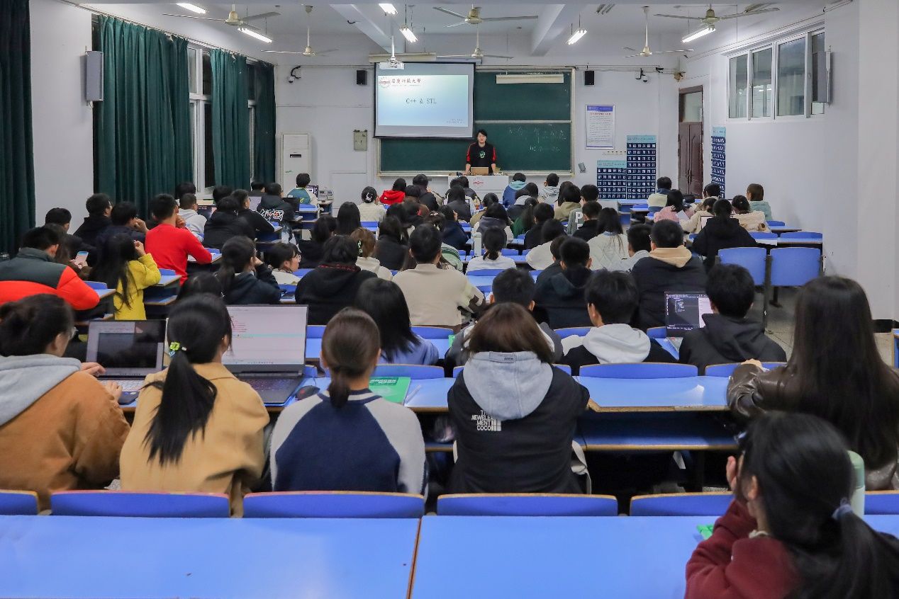 11月12日,威廉希尔足球官网于C楼105教室,开展计算机编程实操课程培训。“只需要一行代码,就可以少写几十个头文件……”课上,授课员工、计算机科学与技术(工)2021级(2)班的乔添歌正在向员工们介绍程序设计竞赛中的技巧。