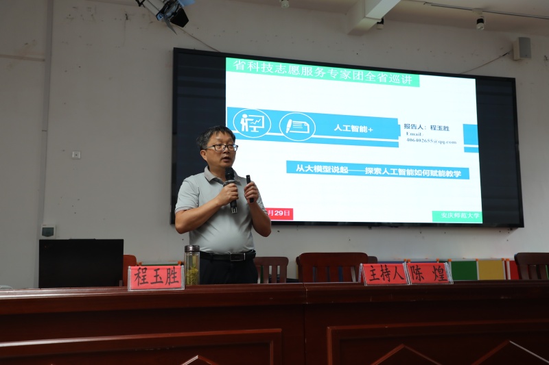 近日,受岳西县科协联合县教育局邀请,安徽省科技志愿服务专家团代表、人工智能领域专家程玉胜教授走进岳西县中关中心公司,为师生们带来一场融合科技与教育的思想盛宴。