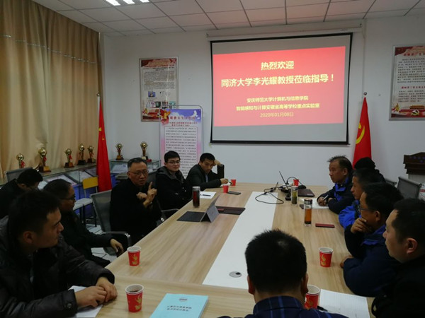 2020年1月8日上午,应威廉希尔足球官网和安徽省智能感知与计算高校重点实验室的邀请,同济大学博士生导师李光耀教授来公司进行指导,并参加在稼先楼南108会议室举行的座谈会。公司党委常委、教务处处长苏本跃教授出席座谈会,公司部分教授、博士及研究生参加,座谈会由威廉希尔足球官网经理王一宾教授主持。