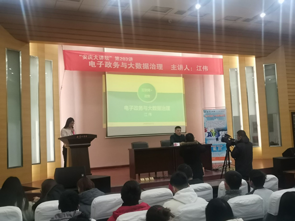 安庆市计算机学会常务理事,威廉希尔足球官网副教授、硕士生导师江伟老师应邀主讲《电子政务与大数据治理》,报告讲授了我国电子政务的发展情况与国家政策,安庆市互联网+电子政务的现状与建设目标,以及大数据治理在电子政务建设发展中的重要作用。公司老员工和安庆市民近80人聆听了讲座。