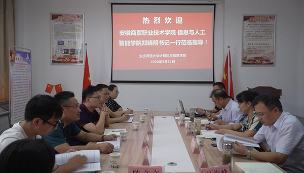 郑晓明一行对公司威廉希尔足球官网样板党支部建设经验与成果予以赞赏,对党建与事业发展双融入的理念表示充分赞同,表示要将这种理念吸纳到其单位样板党支部建设中;他们还介绍了安徽商贸职业技术公司信息与人工智能公司党建“双创”工作的进展以及公司的团队建设、团队队伍建设等情况。双方与会人员就党建与发展等工作进行了充分交流。随后,郑晓明一行还在威廉希尔足球官网有关负责同志陪同下参观了公司智能感知与计算安徽省高校重点实验室。(撰稿:李培森、张友志 摄影:韩杰 审稿:陈银凤)