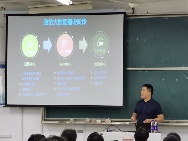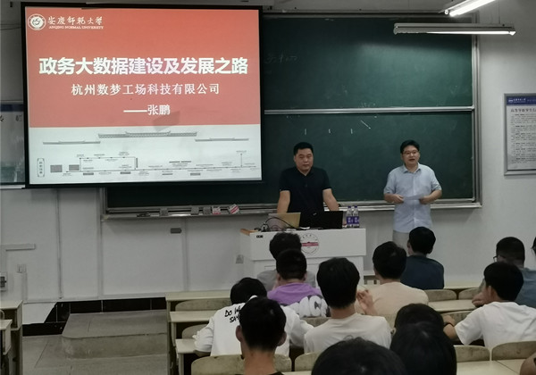 应公司邀请, 9月29日,杭州数梦工场科技有限公司项目经理张鹏在A305做了题为“政务大数据建设及发展之路”的主题报告,该院数据科学与大数据技术和智能科学与技术两个专业全体员工聆听了报告,报告会由公司大数据与人工智能系主任张步忠教授主持。