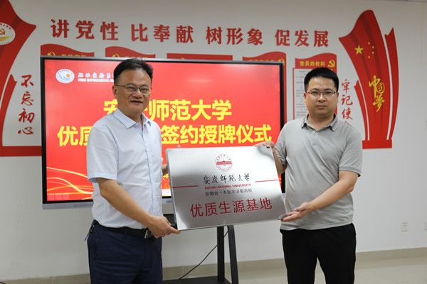 吴健代表公司与肥西实验高级中学签订了协议书,并授予该校“威廉希尔足球官网优质生源基地”牌匾。