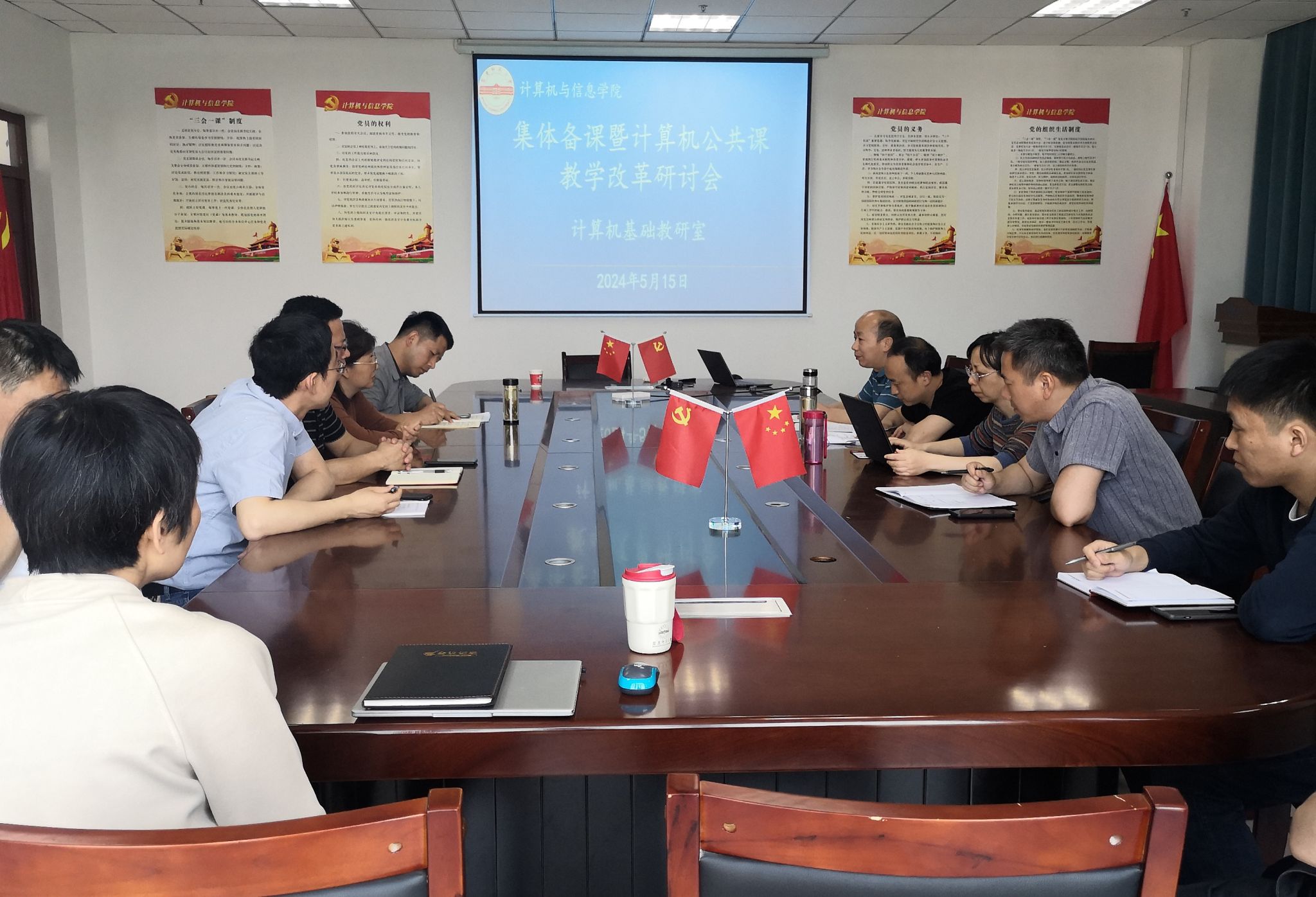 5月15日下午,计算机基础教研室在L318会议室开展开展集体备课暨计算机公共课教学改革研讨活动。活动由教研室主任蔡庆华主持,副经理吴海峰以及本学期承担公共课教学任务的全体教师参加活动。