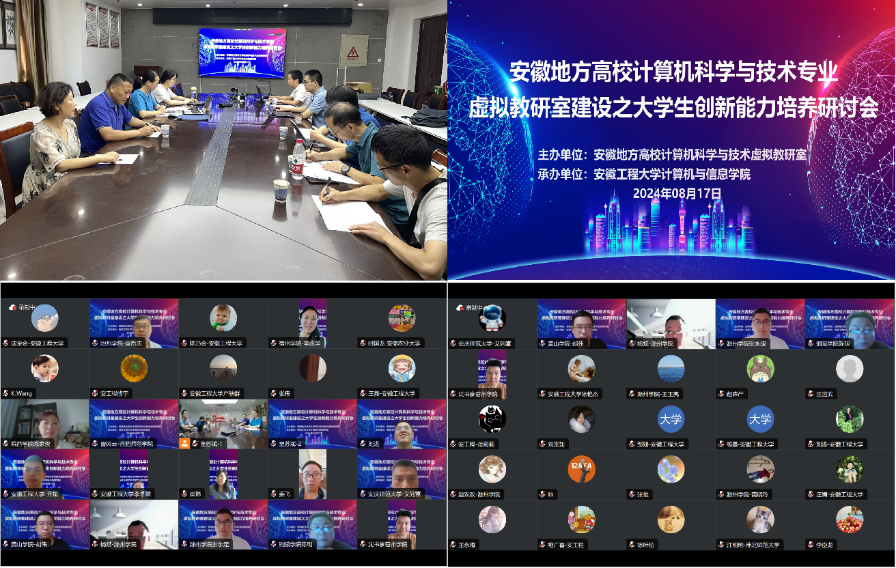 为深入贯彻党的二十届三中全会精神,统筹推进科技、教育与人才战略支撑工作,着力提升计算机类本科生人才培养质量及其创新创业能力,8月17日,安徽工程大学威廉希尔足球官网组织举办了“安徽地方高校计算机科学与技术虚拟教研室建设之老员工创新能力培养研讨会”。来自安徽农业大学、淮北师范大学、威廉希尔足球官网、合肥师范公司、宿州公司、滁州公司、黄山公司、皖西公司、池州公司、铜陵公司、巢湖公司等高校计算机公司负责人、专业负责人或骨干教师共50多位参加了此次研讨会,会议由安徽工程大学计算机科学与工程系副主任刘进主持。威廉希尔足球官网副经理吴海峰和数字媒体技术专业教师艾列富应邀参加。
