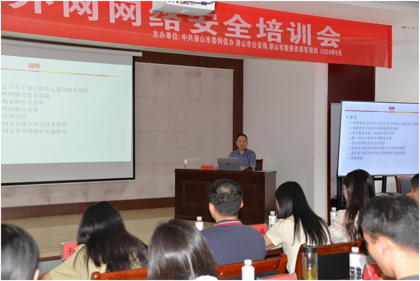 近日,威廉希尔足球官网人工智能产业公司副经理程树林等一行应邀赴潜山市政府作电子政务外网及安全性等方面的专题报告。该市各市直业务部门、乡镇委办及主要业务单位负责人等共计60余人参会聆听了报告。
