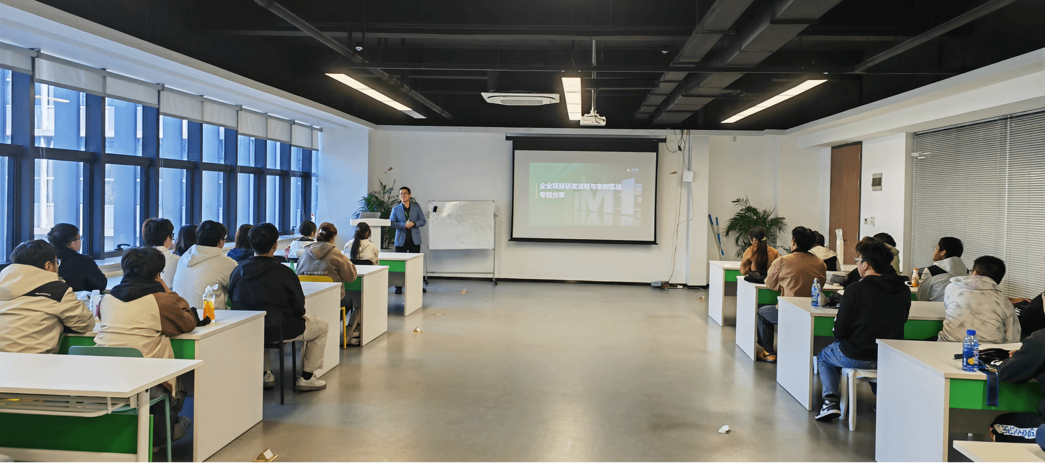 随后,蒋荣慰充分利用此次参观的契机,结合同学们在参观过程中提出的各种疑问,从技术前沿、实践应用及职业发展等多个维度深入浅出地讲授了一堂精彩的专业认知课。他不仅耐心解答,还巧妙地融入了企业近年来的真实开发案例,通过生动具体的项目分析,让同学们直观感受到理论知识与实际工作之间的紧密联系。专业认知课的开展,不仅拓宽了同学们的视野,更激发了他们对专业知识的浓厚兴趣和对未来职业生涯的美好憧憬。