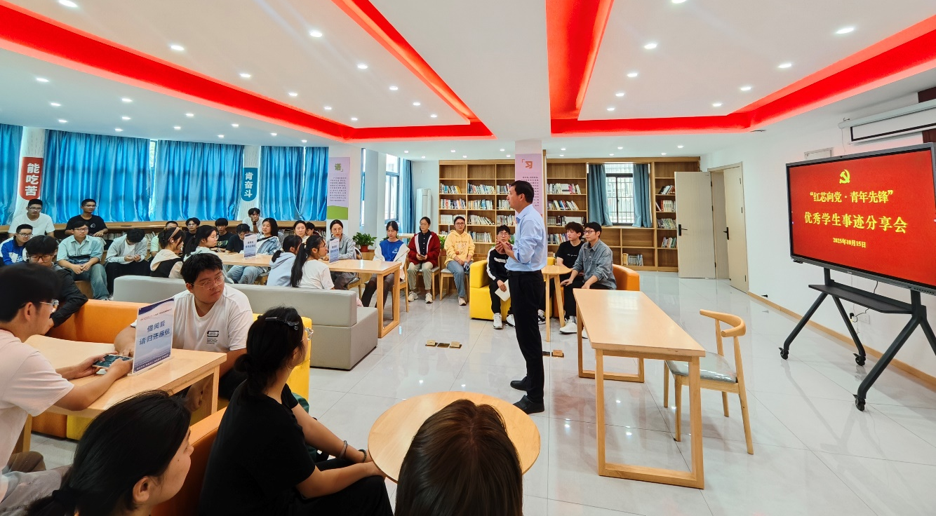 交流环节中,5位国家奖学金获得者依次分享成长经验,用自身经历诠释先锋力量,为低年级员工指明成长方向。统计学研究生国家奖学金获得者以“科研攻坚”为核心,详细讲解在国际顶级学术期刊发表论文的全过程,从选题调研到数据论证,从瓶颈突破到成果打磨,展现出扎实的科研能力与严谨的学术态度,为有志于科研的员工提供了可借鉴的“研途”路径。本科生国家奖学金获得者们则从多维度传递奋斗力量:物联网工程2022级党员潘重豪分享学科竞赛与科创实践经验,结合嵌入式技术学习与竞赛备赛经历,拆解团队协作、技能提升的关键方法;智能科学与技术2022级纪润奇以“科技报国”为主题,讲述将人工智能知识应用于科研项目、斩获多项国家级奖项的故事,展现专业知识与国家需求的结合;物联网工程2023级马欣玥、数字媒体技术2023级吴欣雨、数据科学与大数据技术2023级张心远分别从“学业与员工工作平衡”“志愿服务与专业实践融合”“学科竞赛与全面发展协同”等角度,分享综合测评稳居前列、兼顾志愿奉献与文体发展的经验,让低年级员工看到“全面发展”的具体路径。