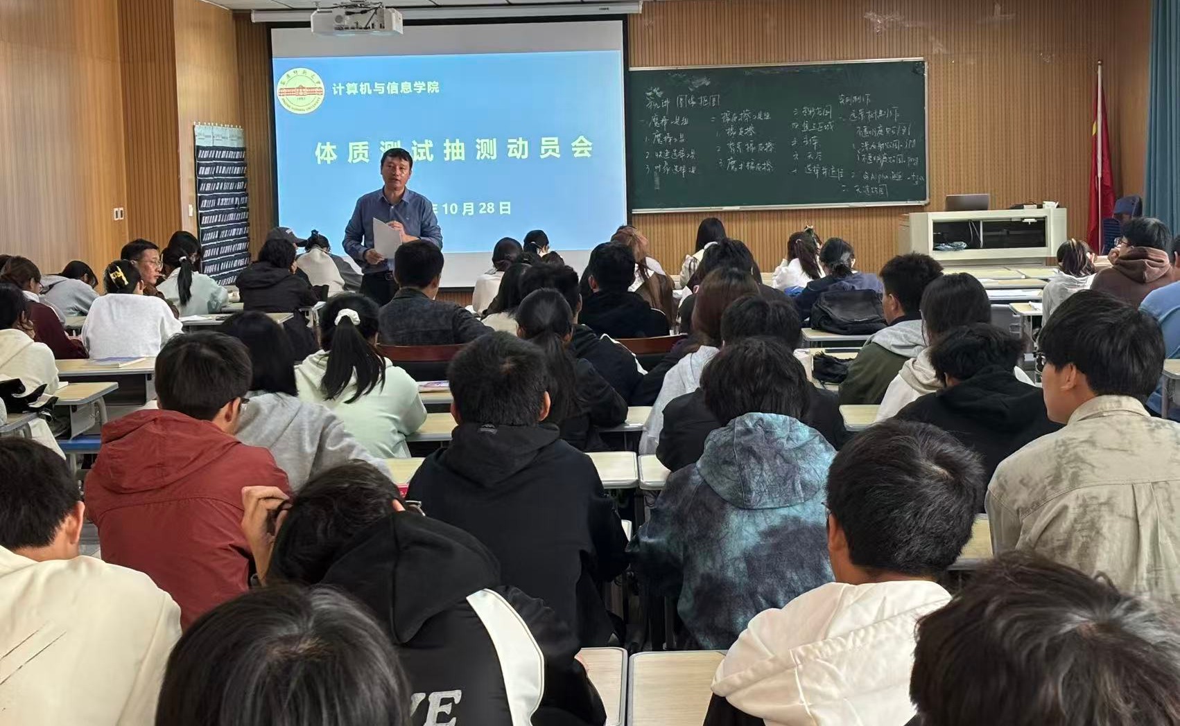 10月28日,公司在314教室召开体质测试抽测动员会。公司党委副书记肖之进、团委负责人、抽测涉及班级辅导员及80名抽测员工代表参加会议。