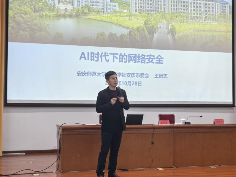 10月28日,安庆市委网信办组织举办全市网络安全和信息化专家库培训班,120余名在库专家参加培训。王远志教授受邀为培训班授课。