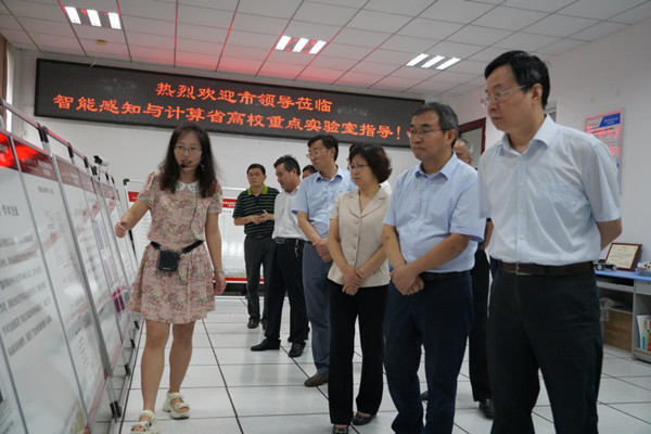 调研组一行分别实地考察了智能感知与计算安徽省高校重点实验室和国家IT工程实践教育中心。重点实验室负责人从科学研究、人才培养、队伍建设、学术交流和社会服务等5个方面向市领导进行了展示汇报;工程中心负责人就中心的基本情况以及虚拟现实技术在黄梅戏数字化保护、江豚保护等方面的研究工作向市领导进行了介绍;考察期间市领导就感兴趣的技术领域与相关老师进行了现场交流。在随后的座谈会上,公司经理王一宾教授向与会领导汇报了人工智能产业公司工作进展情况。