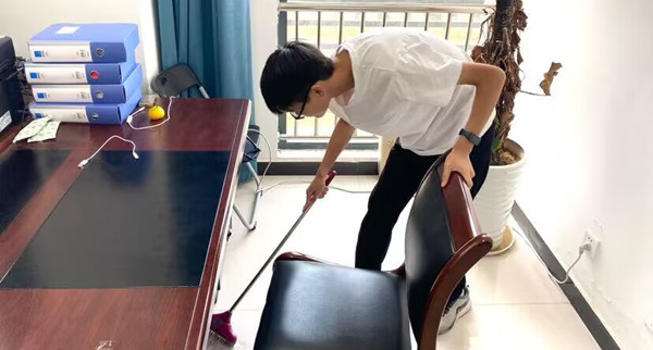 扫地拖地、整理桌面、扔倒垃圾……除了送花外,另一批员工来到了教师办公室与学科教研室进行卫生打扫。为了不打扰教师办公,员工们自觉放缓脚步、放慢动作。经过员工们两个多小时的辛勤劳动,近二十余间办公室“焕然一新”。