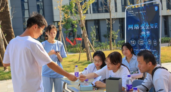 除了线上学习答题,公司还在线下设有网络安全知识竞答,答题成功的同学即可获得果味香薰、复古笔记本、冰丝防晒口罩等精美礼品。英语(师范)专业2021(4)班的陶涛从提前准备好的题库里抽取题目,很快“挑战”成功,他表示自己身边的朋友曾有过网络受骗的经历,所以他平时很重视网络安全。“知识竞答活动虽小,但却意义非凡,它不仅能让我们了解更多的网络安全知识,还能进一步提高我们的网络安全防范意识和自我保护能力。”