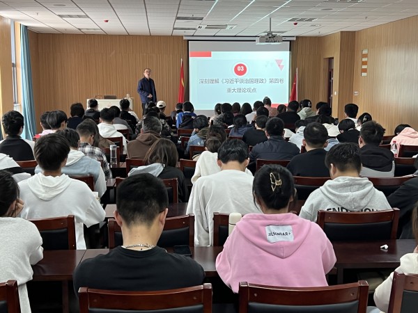 金文斌指出,深刻认识三个“之变”——世界之变、时代之变、历史之变,深刻认识中国发展之路的艰难,对于深入学习习近平新时代中国特色社会主义思想以及加强对中国之路、中国之治、中国之理的把握都具有重要意义。他从教育、国防等方面详细带同学们回顾了疫情时代下中国经济社会的发展,指出做好疫情防控工作直接关系到我们经济社会的大局稳定,同学们也应铭记和学习中国人民敢于斗争、敢于胜利的大无畏气概,做一个堪当民族复兴重任的新时代好青年。
